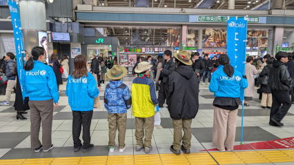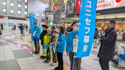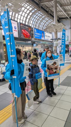 2025年12月20日、品川駅構内にて、ユニセフ ハンドインハンド募金に参加しました。 品川駅をご利用のかたに募金をしていただきました。 |