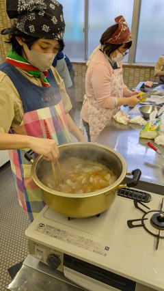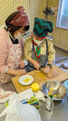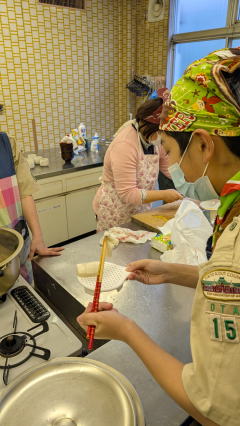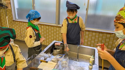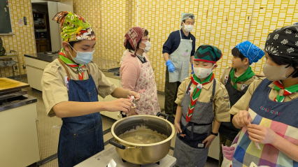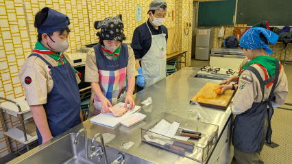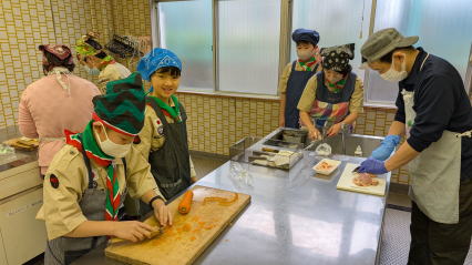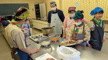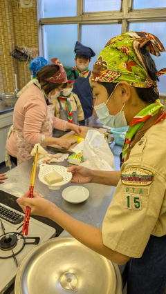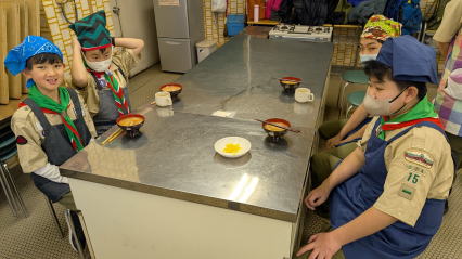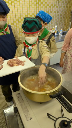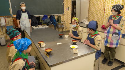 1月11日、馬込文化センターにて、お雑煮作りを実施しました。 ボーイ隊副長宅で食べているお雑煮を、みんなで作りました。 お餅、大根、人参、鶏肉の入ったお雑煮で、とても美味しくいただきました。 |