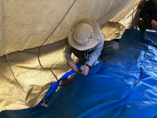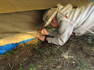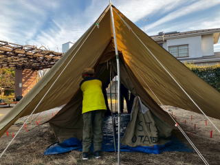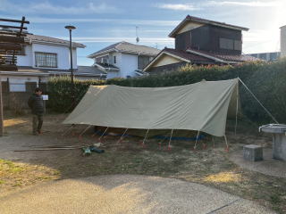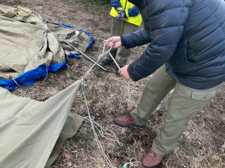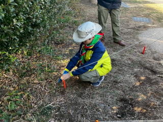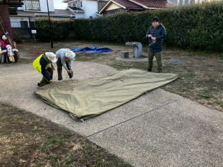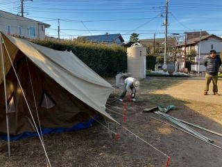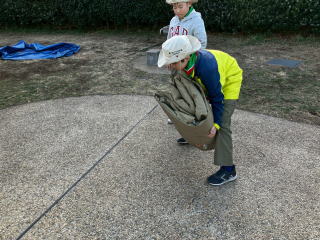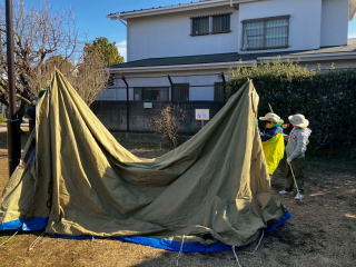 1月31日、南馬込うえだい公園にて、テント設営訓練を実施しました。 スカウトは地面にペグを打つところから練習しました。 |