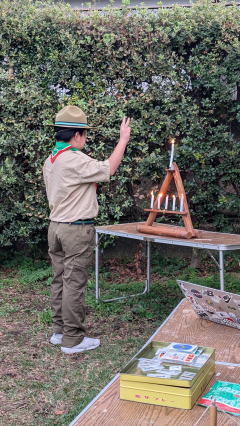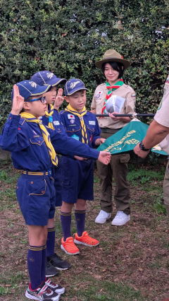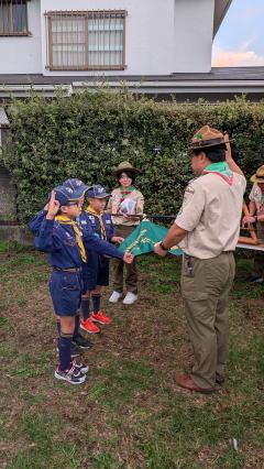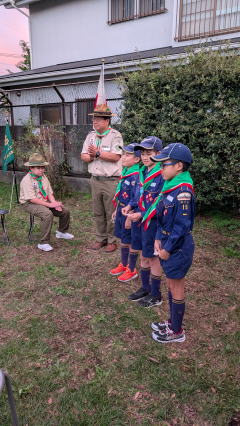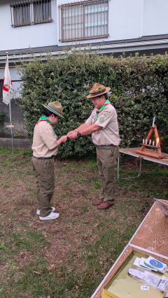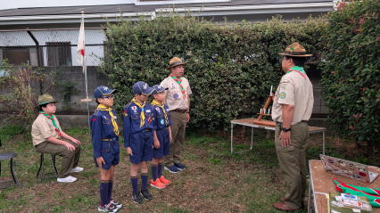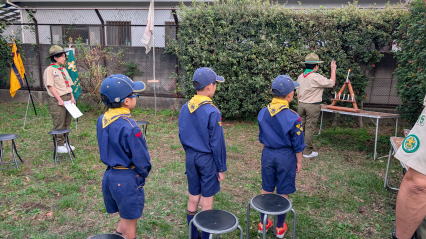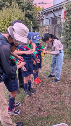 2025年10月13日、南馬込うえだい公園にて、入隊・上進式を実施しました。 カブ隊からボーイ隊へ3名が上進しました。 ボーイ隊として、新しいスカウト活動の始まりです。 |